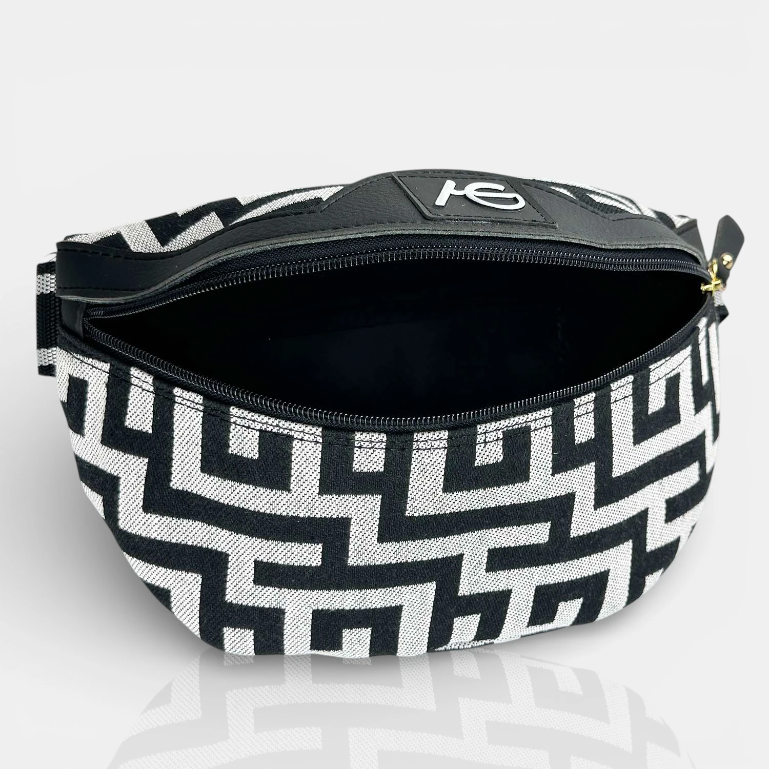 Ασπρόμαυρη υφασμάτινη τσάντα μέσης/στήθους μικρού μεγέθους, τύπου μπανάνα, ιδανική για πρακτικές και μοντέρνες εμφανίσεις. Ο διαχρονικός συνδυασμός χρωμάτων την καθιστά εύκολη στο styling, ενώ το ελαφρύ και ανθεκτικό ύφασμα προσφέρει άνεση στην καθημερινή χρήση.