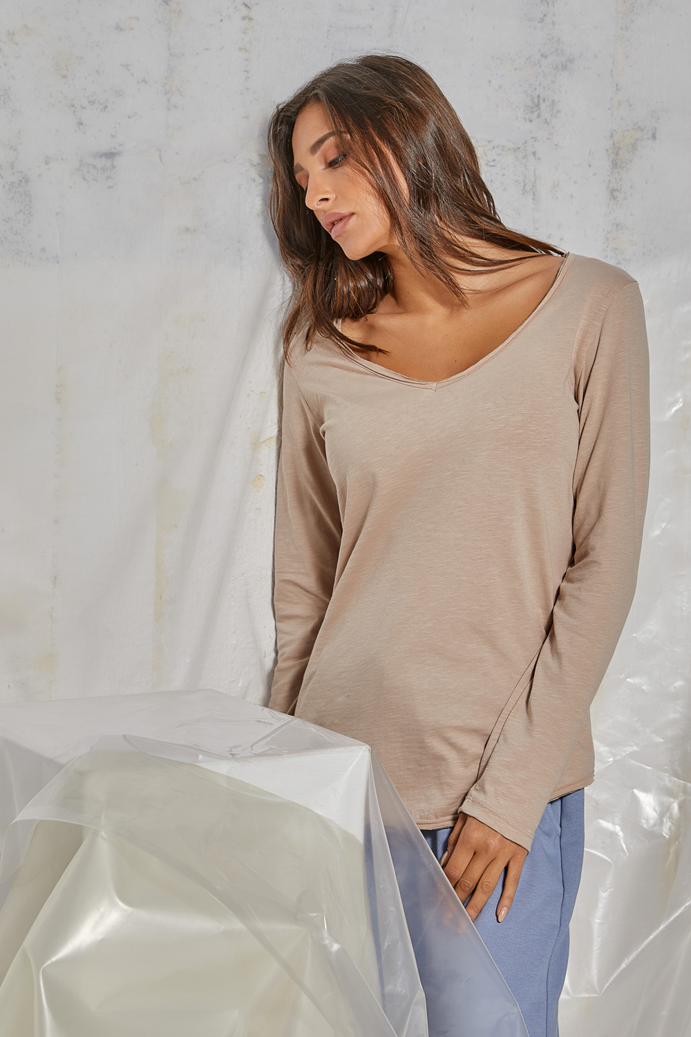 Αυτό το βασικό τοπ με μακρύ μανίκι είναι φτιαγμένο από ανάλαφρο, διάφανο ύφασμα (sheer), ιδανικό για layering όλο τον χρόνο. Διαθέτει βαθύ V-ντεκολτέ που κολακεύει το ντεκολτέ και χαλαρή γραμμή για άνετη και αέρινη εφαρμογή. Ένα διαχρονικό κομμάτι που προσδίδει casual chic στυλ.