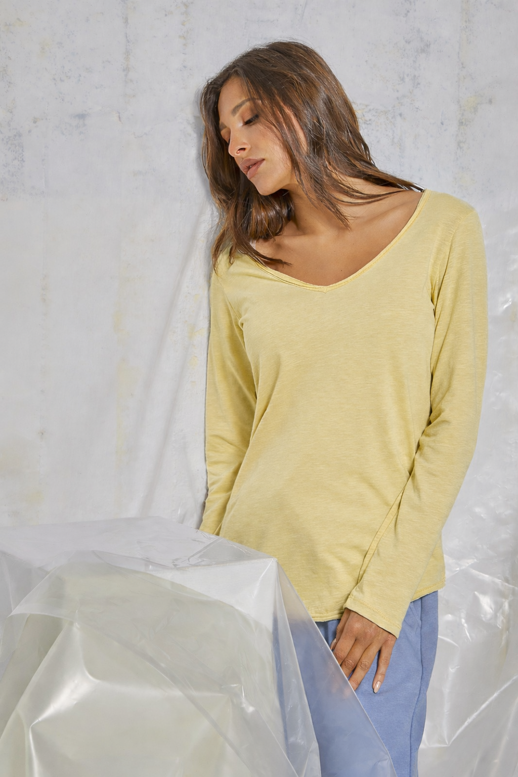 Αυτό το βασικό τοπ με μακρύ μανίκι είναι φτιαγμένο από ανάλαφρο, διάφανο ύφασμα (sheer), ιδανικό για layering όλο τον χρόνο. Διαθέτει βαθύ V-ντεκολτέ που κολακεύει το ντεκολτέ και χαλαρή γραμμή για άνετη και αέρινη εφαρμογή. Ένα διαχρονικό κομμάτι που προσδίδει casual chic στυλ.