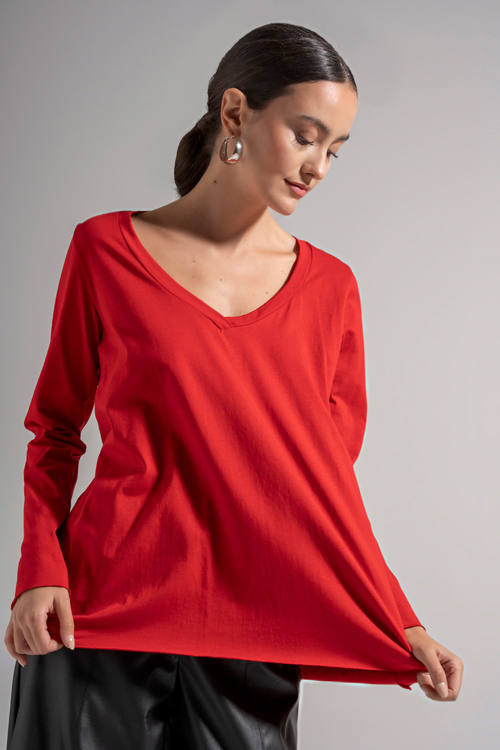 Μπλούζα με V oversized Κόκκινη