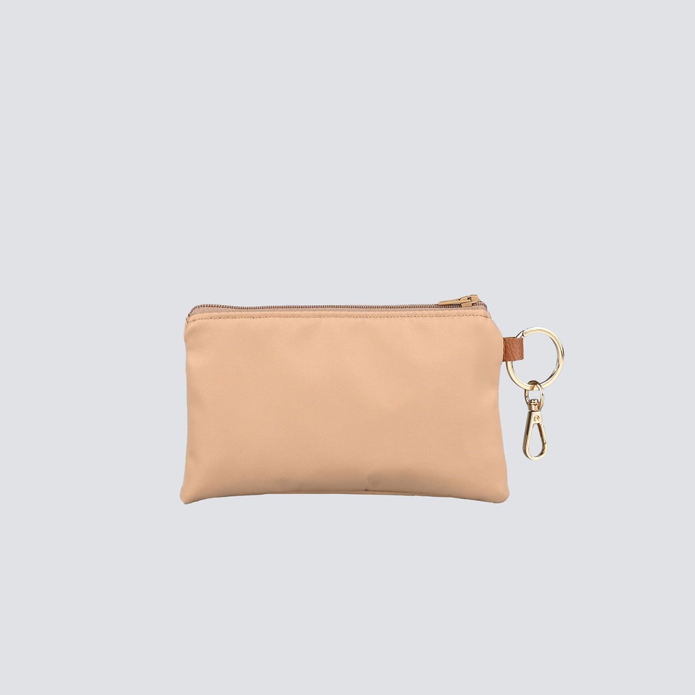 Ένα ιδιαίτερο πορτοφόλι μπρελόκ, εμπνευσμένο από την αισθητική της νέας μας συλλογής. Κατασκευασμένο από premium Nylon Fabric της Lovely Aeris Collection. Κλείσιμο με φερμουάρ κατά μήκους του πάνω μέρους, ενώ μπορείς να το κρεμάσεις και στα κλειδιά σου από τον μεταλλικό κρίκο. Στο εσωτερικό του θα βρεις light grey χρώματος υφασμάτινη φόδρα.