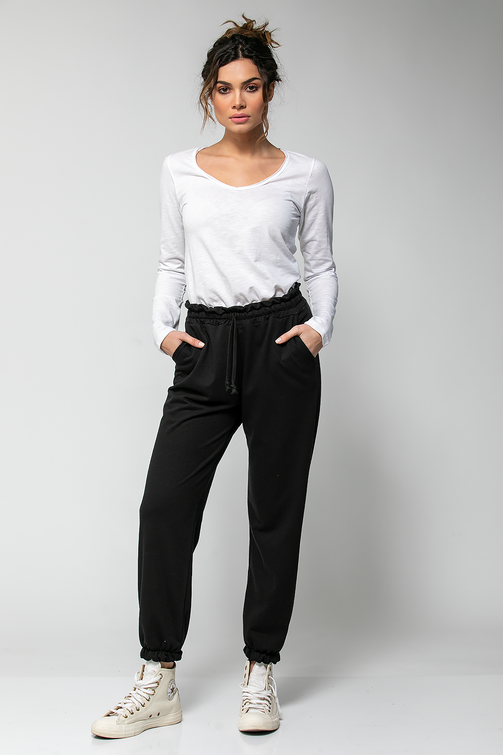 Άνετο και ευκολοφόρετο παντελόνι φούτερ με ελαστική μέση και ρυθμιζόμενο κορδόνι για τέλεια εφαρμογή. Διαθέτει πρακτικές πλαϊνές τσέπες και λάστιχο στο τελείωμα για μοντέρνα, χαλαρή γραμμή. Ιδανικό για καθημερινά casual looks, από το σπίτι μέχρι τις βόλτες σου.