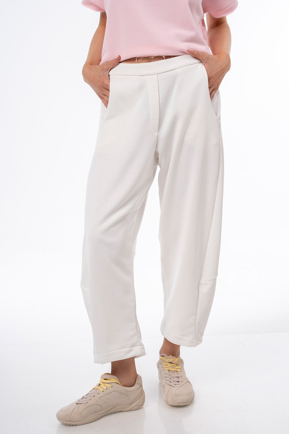 Παντελόνι φούτερ με τσέπες barrel Λευκό