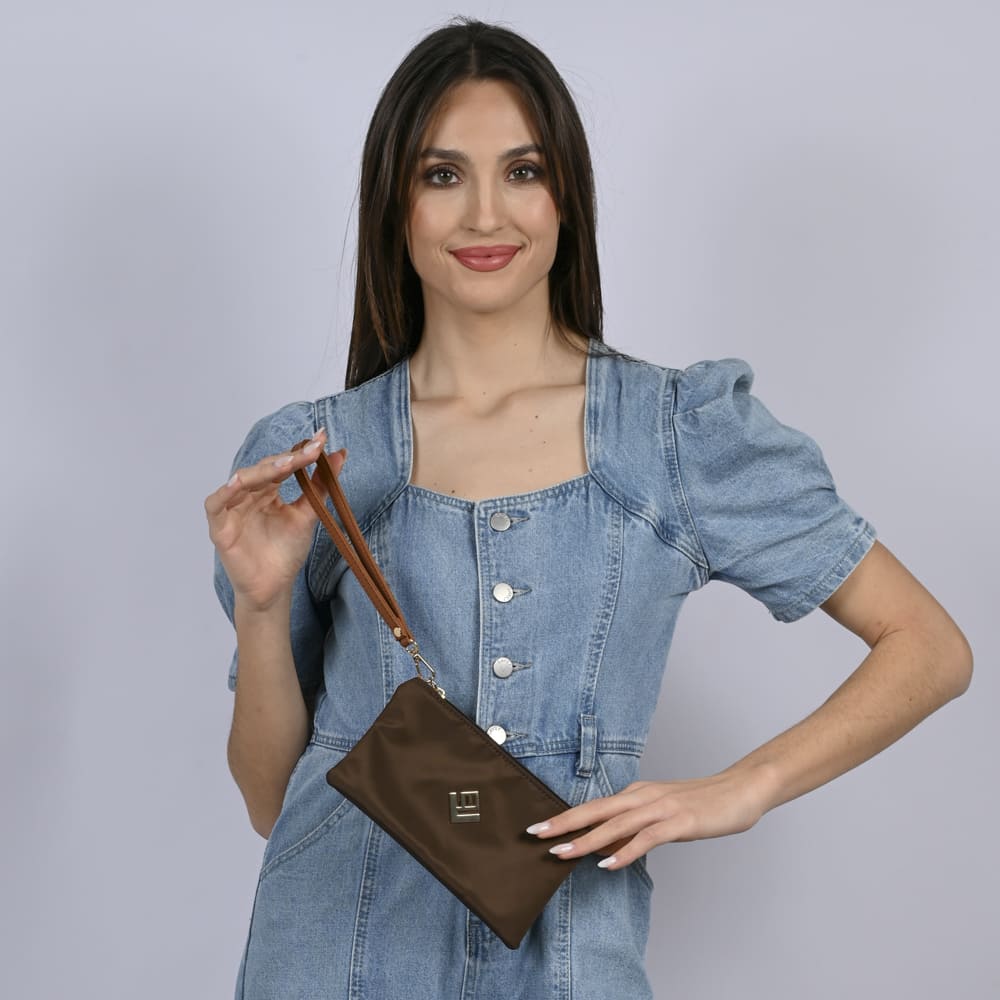 Ένα χαρακτηριστικό πορτοφόλι, εμπνευσμένο από την ιδιαίτερη αισθητική της νέας μας συλλογής. Κατασκευασμένο από το premium Nylon Fabric της Lovely Aeris Collection. Κλείσιμο με φερμουάρ κατά μήκος του πάνω μέρους, ενώ μπορείς να το κρατήσεις και από το μικρό του χερούλι από συνθετικό δέρμα. Στο εσωτερικό του θα βρεις ανοιχτή γκρι υφασμάτινη φόδρα και χώρο για τα απαραίτητα της καθημερινότητας.
